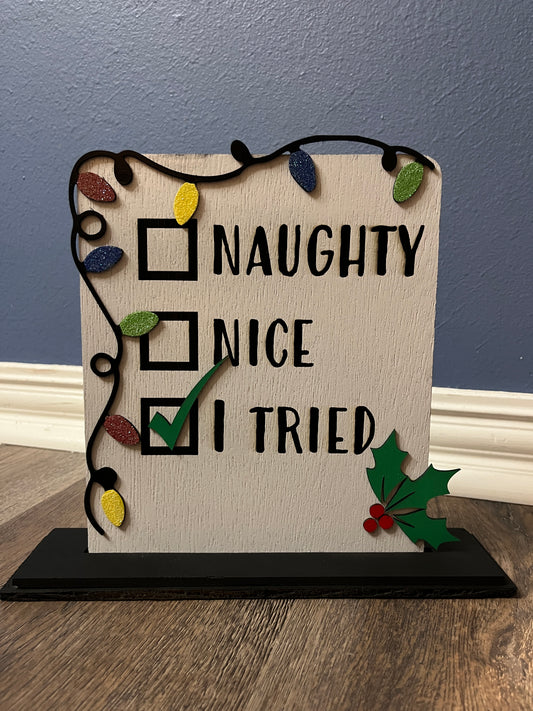 Naughty, Nice, I Tried Sign