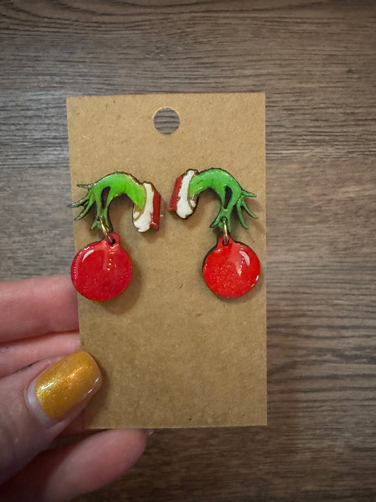 Green Hand Ornament Earrings