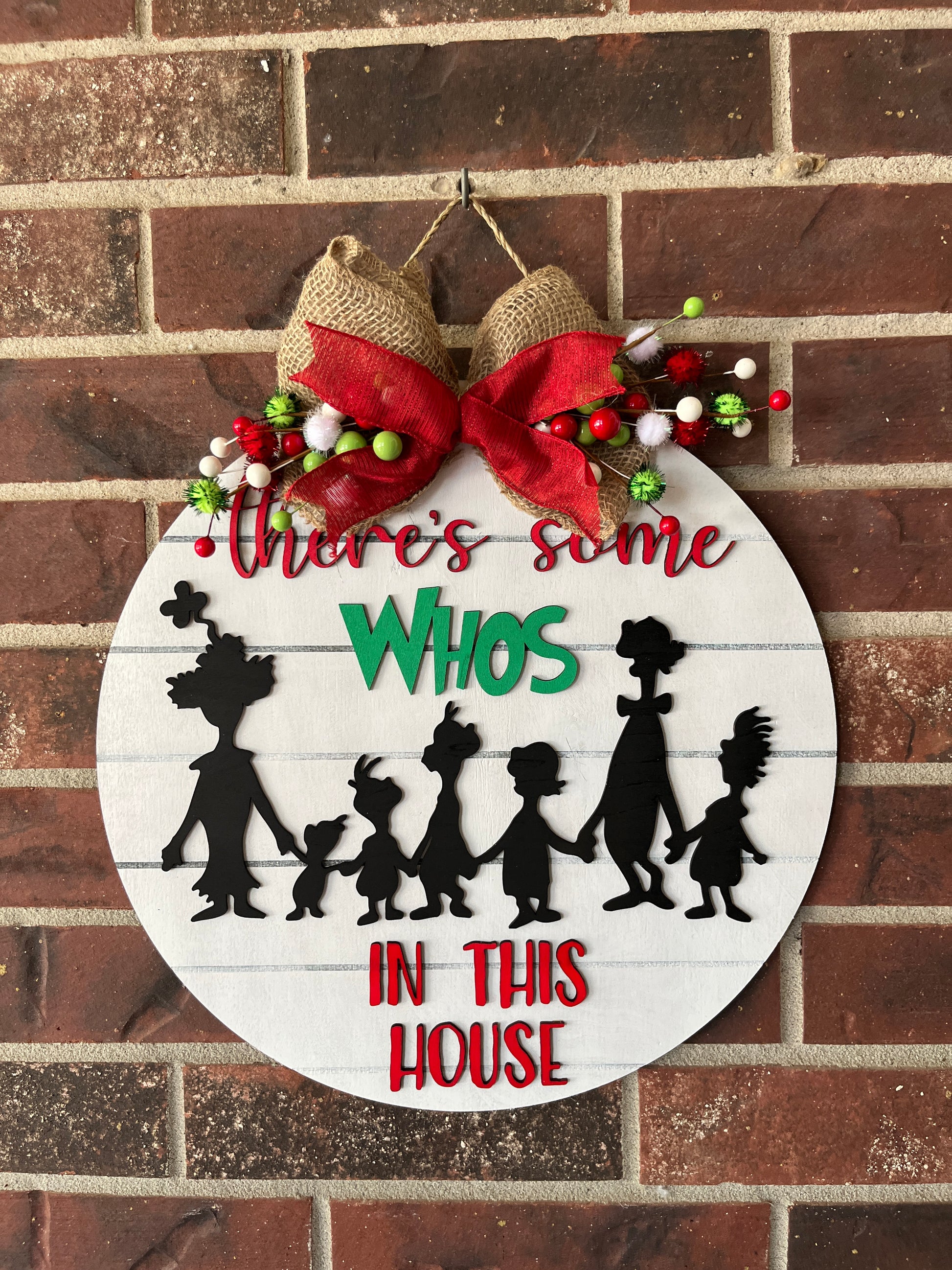 This witty Christmas door hanger has laser cut letters and images glued to a "shiplap" birch round, sealed on front and back. Choose between a 12", 15", or 18" round.