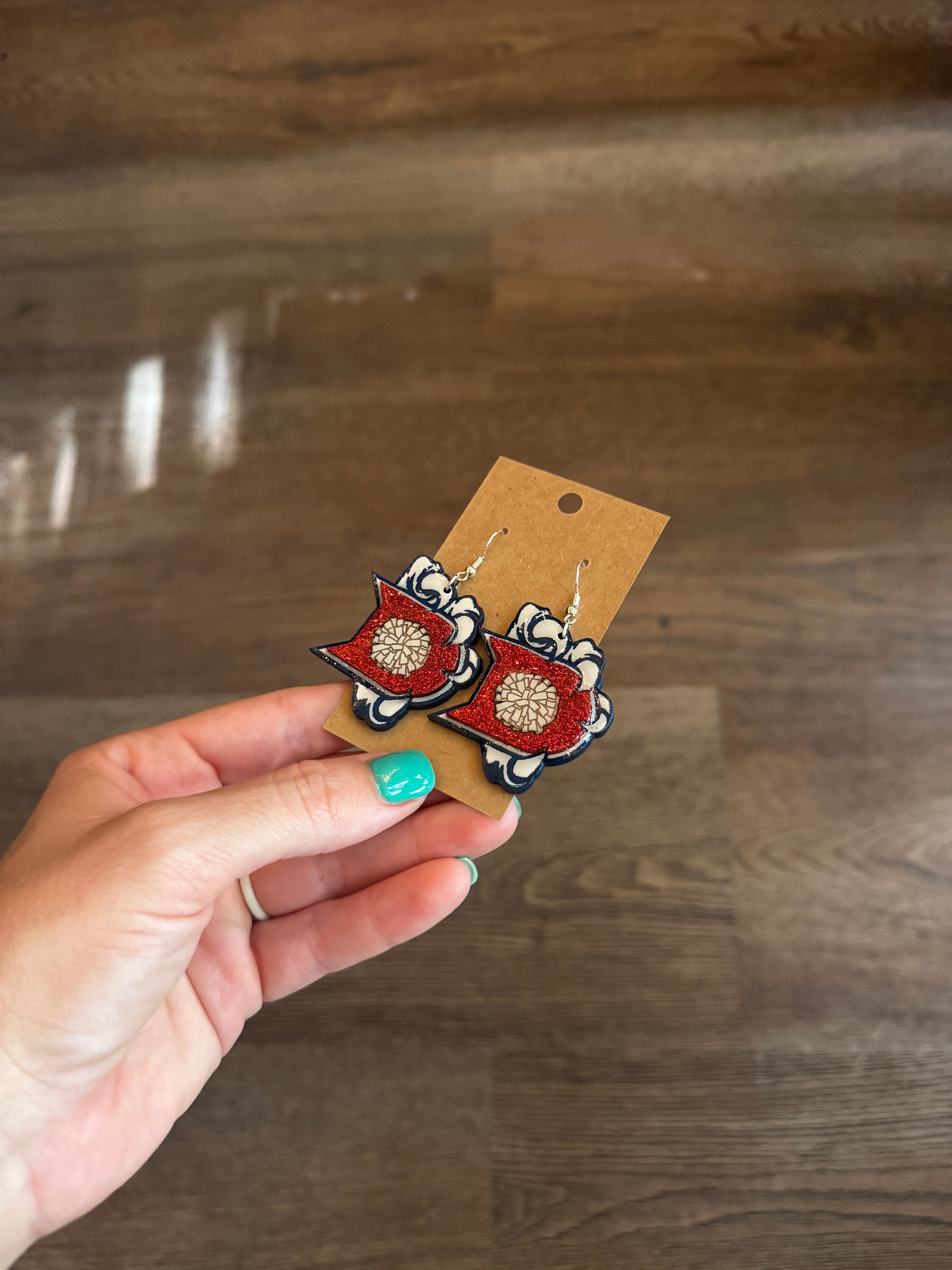 These school spirit earrings are offered in various styles to cheer on Pearland's Dawson Eagles. Whether your child is in the band, on a sports team, or you just like to represent the school, you can choose the perfect style for you. They are made of laser cut wood and attached to hypoallergenic hooks/posts.