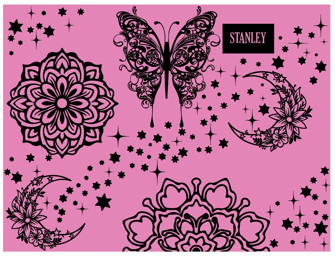 These 2 mandala designs are custom made for engraving stainless steel powder coated 30 oz and 40 oz Stanley cups but can easily be resized for any other size or brand of your choosing. There is NO physical product with this order. It is a digital svg cut file to use on your own cutting machine (ie glowforge, xtool, cricut, silhouette, etc.). If there is a different format you need, please email me so I can accommodate your preferences.