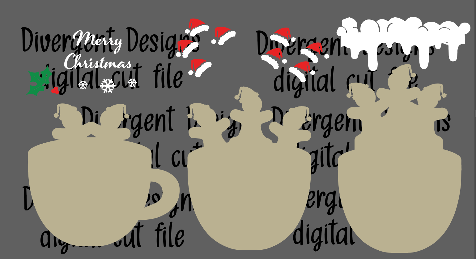 This 36-piece digital file has all the layers you need to make your own hot cocoa cup! Size it however you like and cut out all the pieces using your laser cutter, Cricut, or Silhouette to make your own personalized Christmas decor.