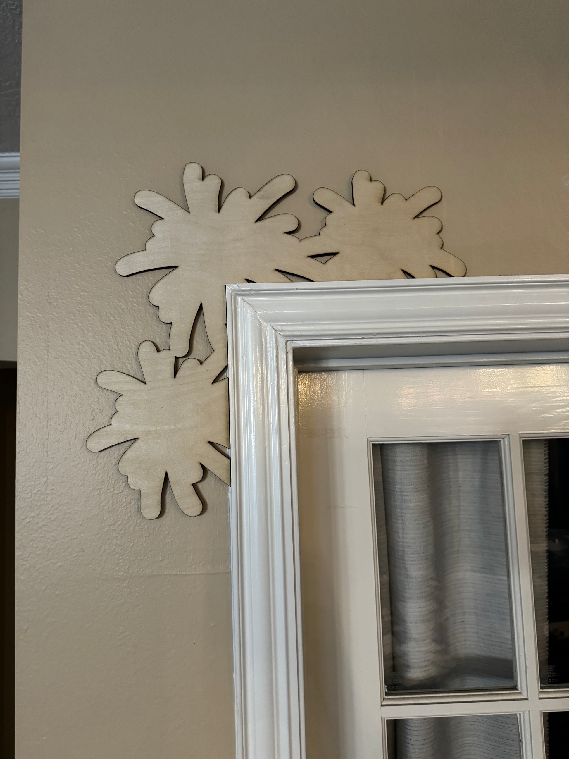 This blank firework wood topper is made of 1/4" laser cut birch plywood and it rests on top of your door frame without nails or adhesives. It's unpainted and unsealed so they are ready to be decorated however you like for New Years, Independence Day, or any festive holiday. Choose a left-sided (as pictured) or right-sided corner. Or buy them in a pack of 10, and receive a discounted price.