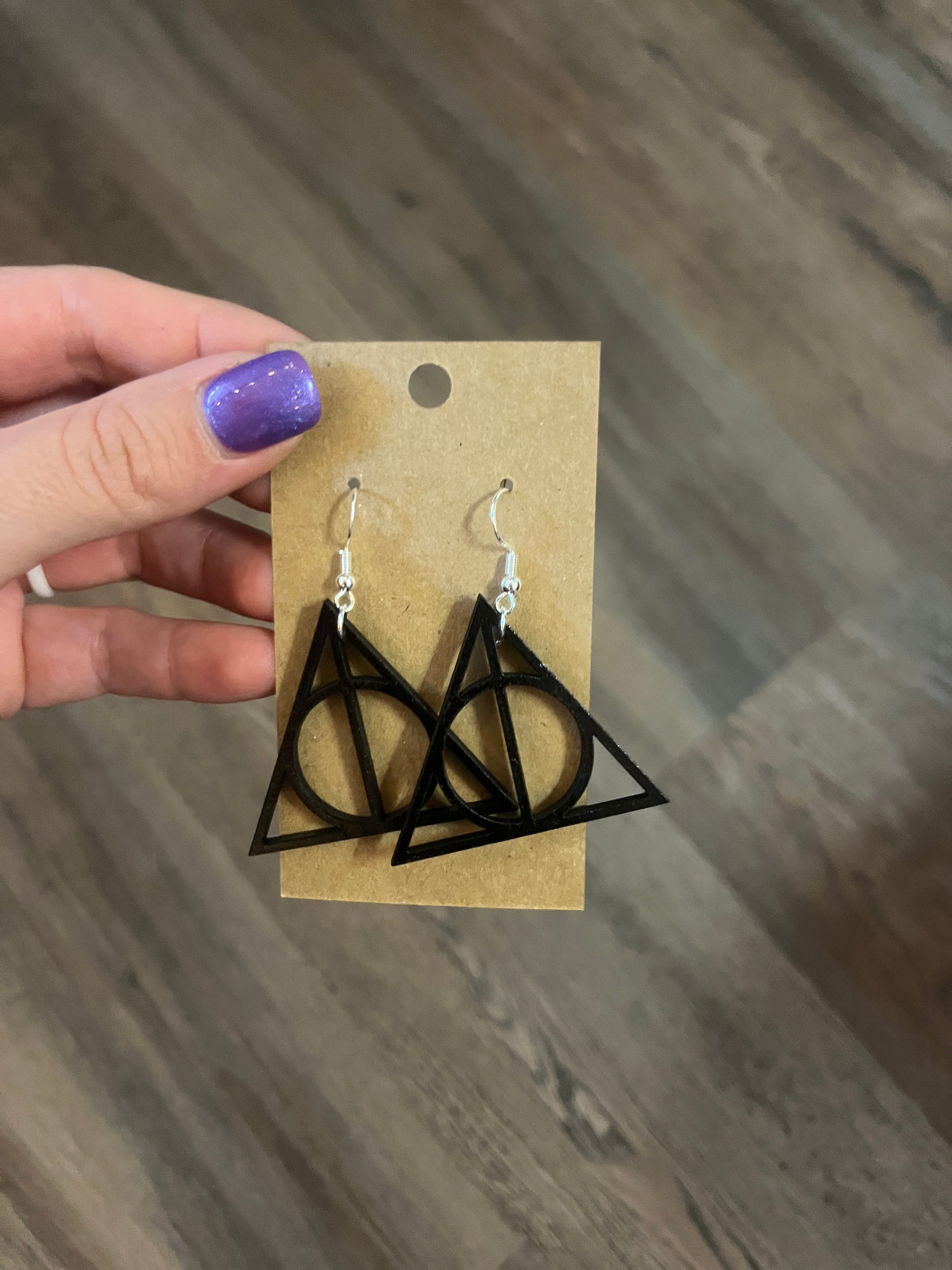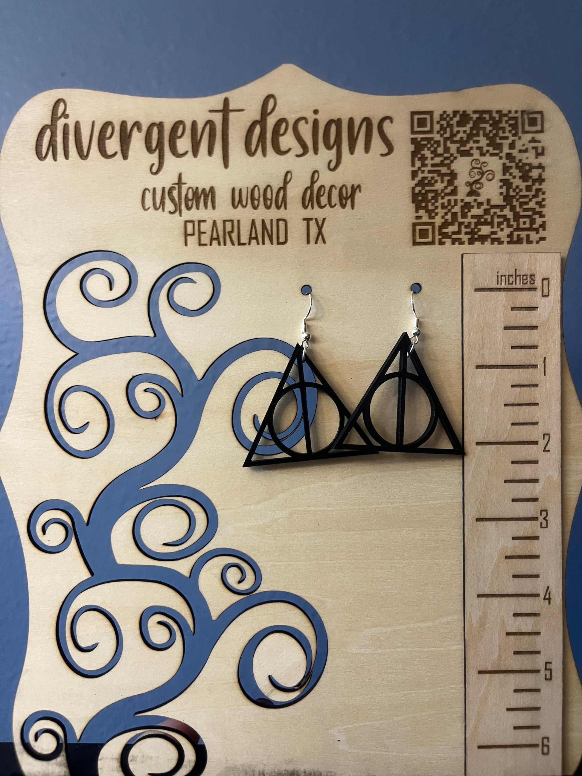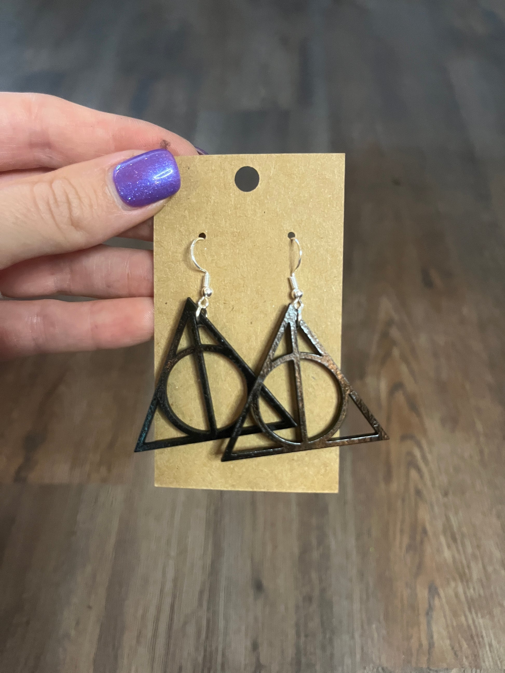 Show off your wizard love for these movie inspired earrings. These earrings are about 2" long, hung on hypoallergenic hooks and available in any color you like. They are perfect for showing your fandom at themed events and parties.