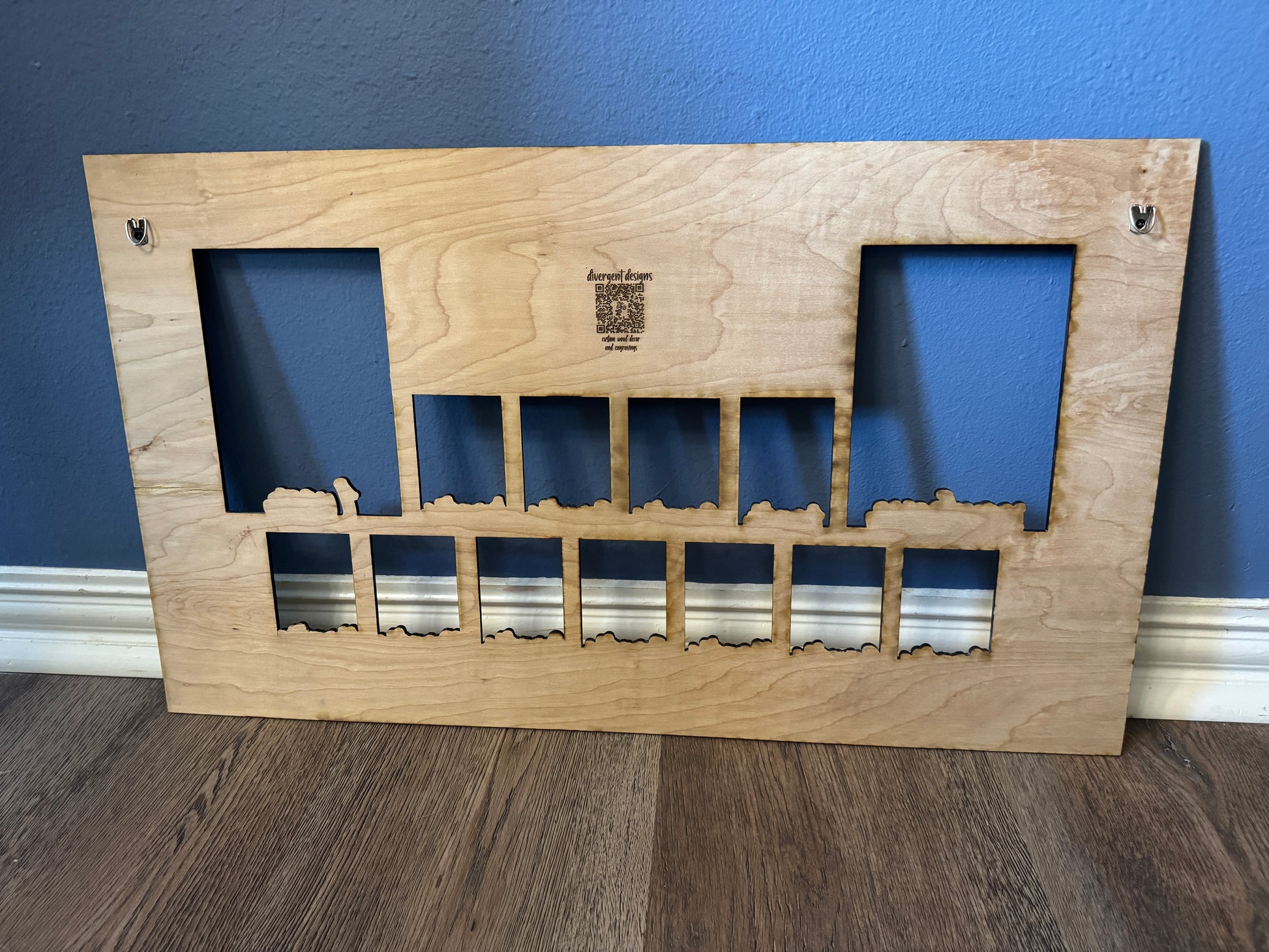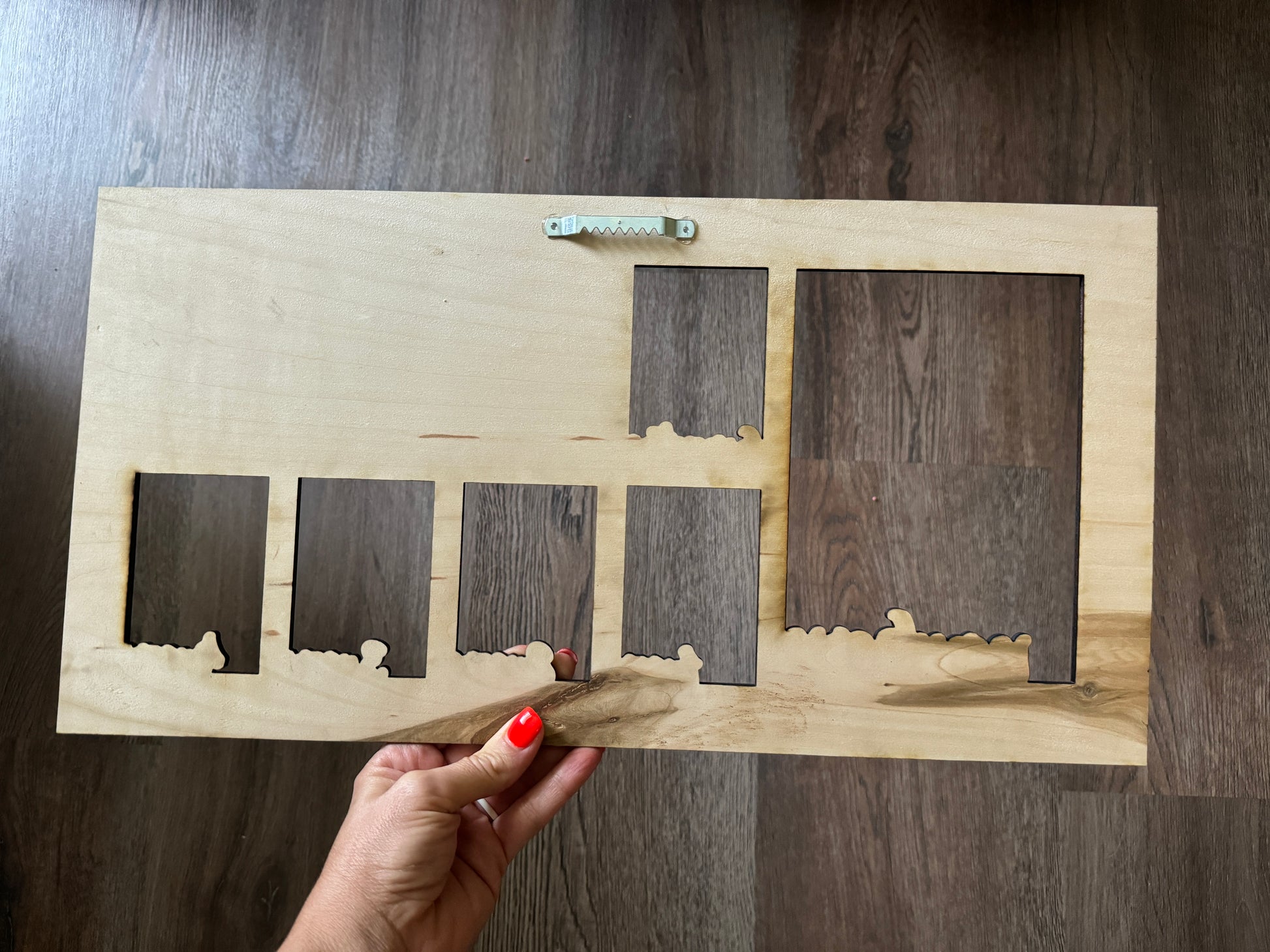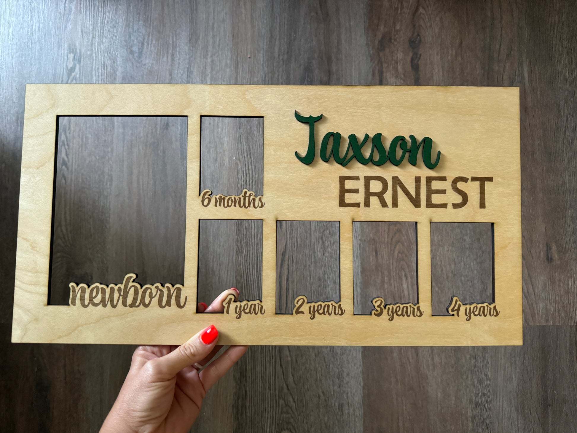 These frames are perfect for capturing those fleeting moments of your little ones and seeing how much they've grown over the years (or months). This lightweight, simple design is made of laser cut birch plywood, with engraved lettering. There are sawtooth wall mounts on the back for hanging and pictures are easily attached with a pieces of tape.