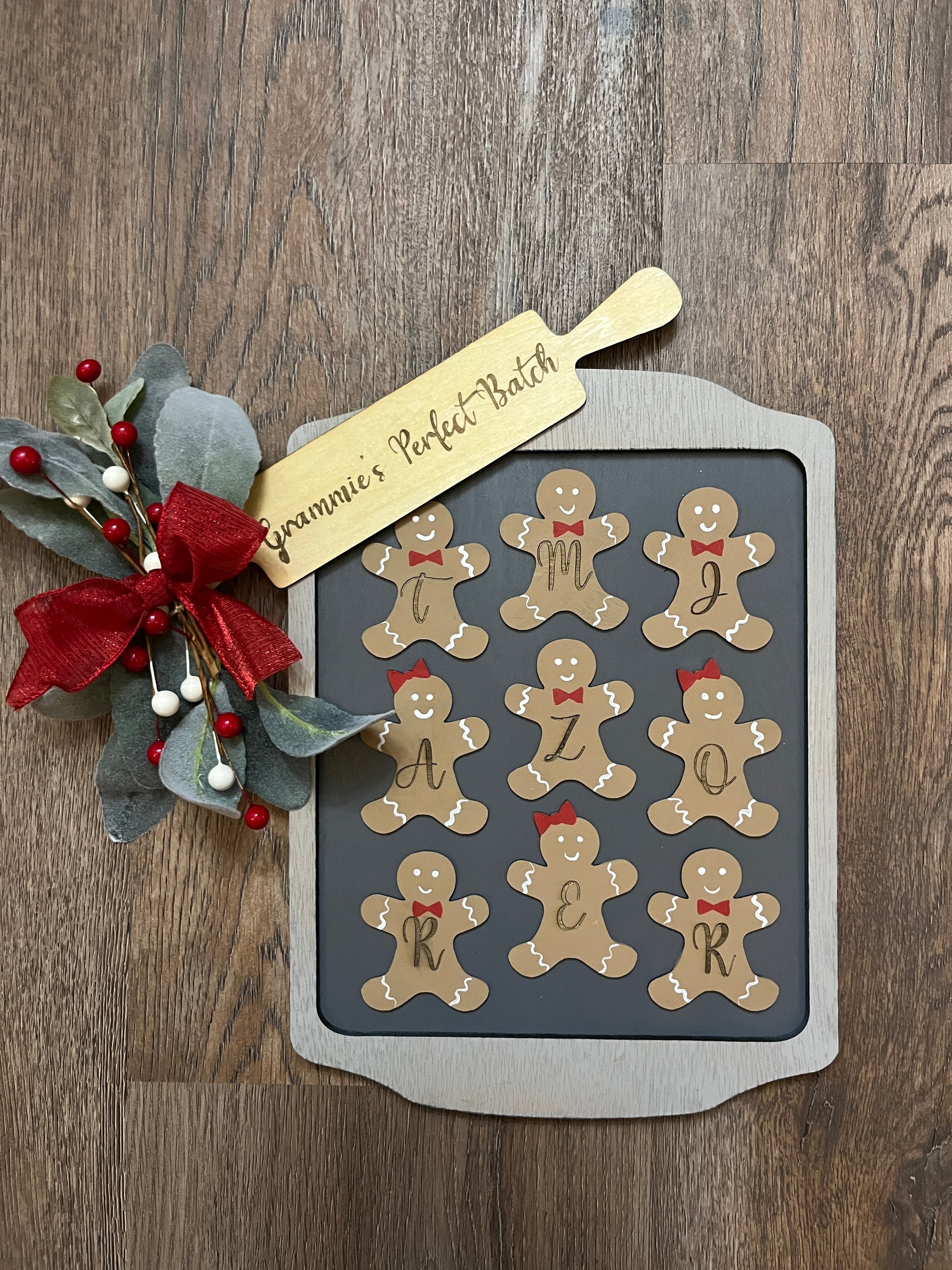 Select how many girl and boy cookies you need (no additional cost) and if you would like them engraved, you can either email me with the names or write them in the "order special instructions" box on the cart screen before checkout. You will also need to let me know who's "perfect batch" this is for: Grammie's, mom's, grandpa's, etc so I may engrave it on the rolling pin.