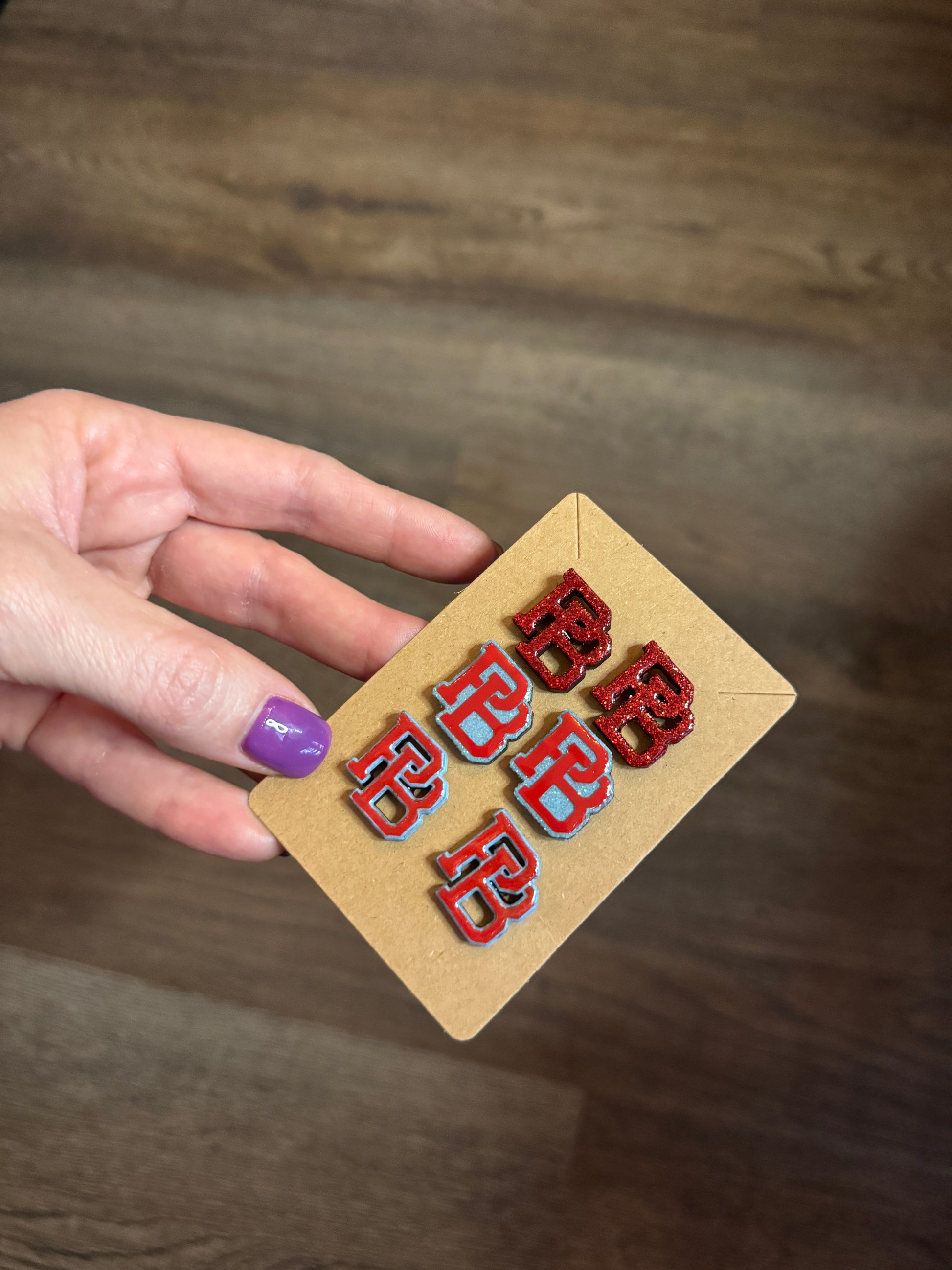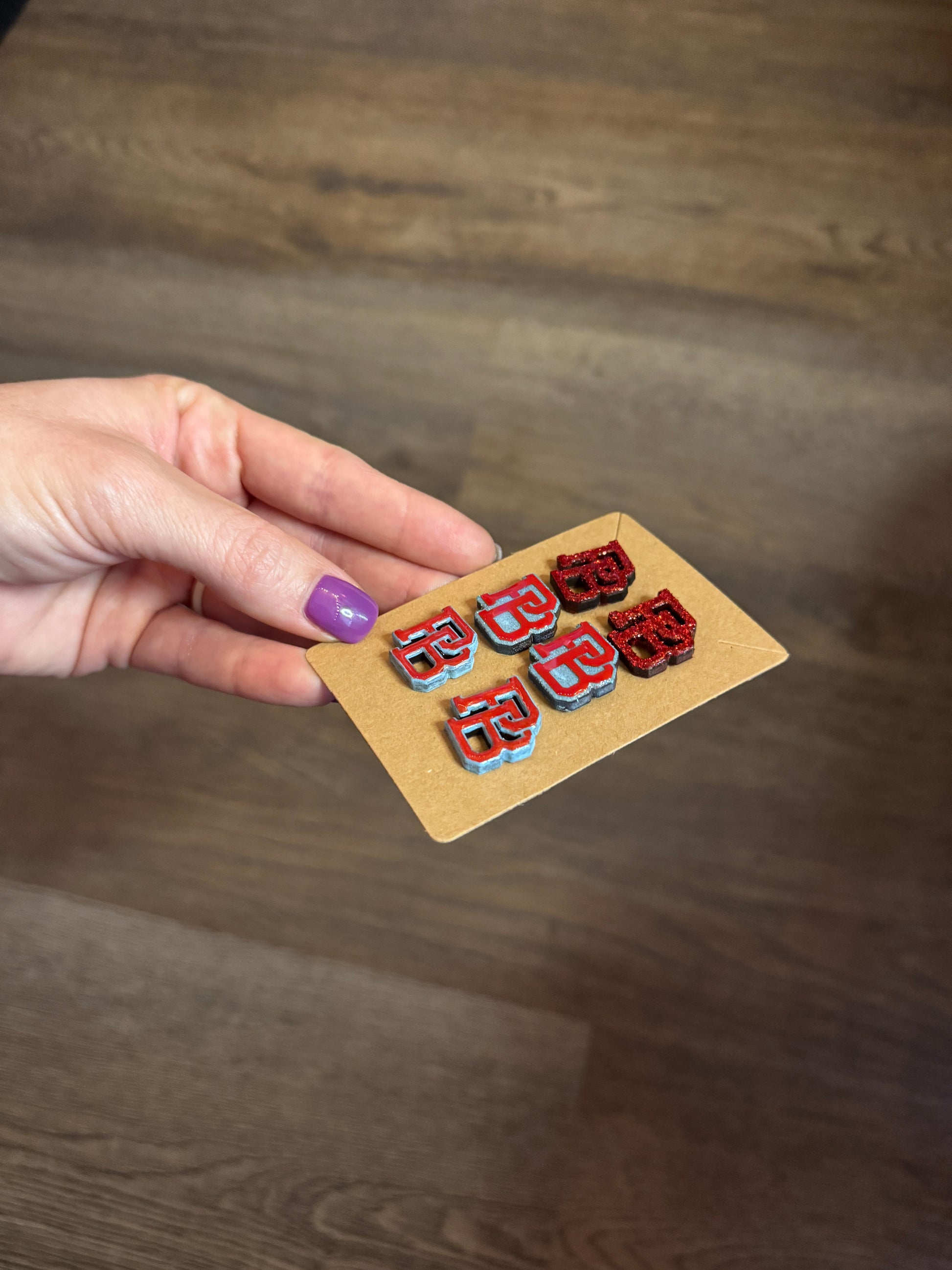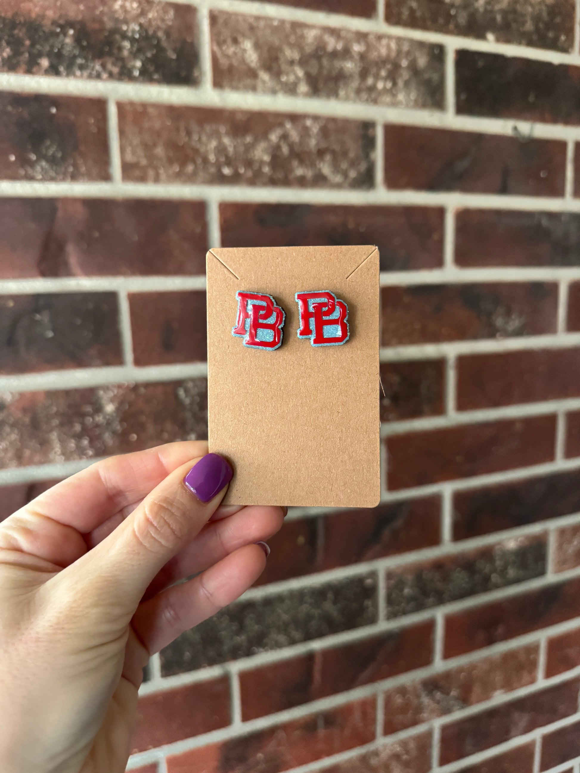 These spirited earrings are the perfect accessory to cheer on your baseball player! The stud versions are 0.75 inches long and a little wider than 0.5 inch. Hanging versions are also an option (no pictured though) at 2" long.