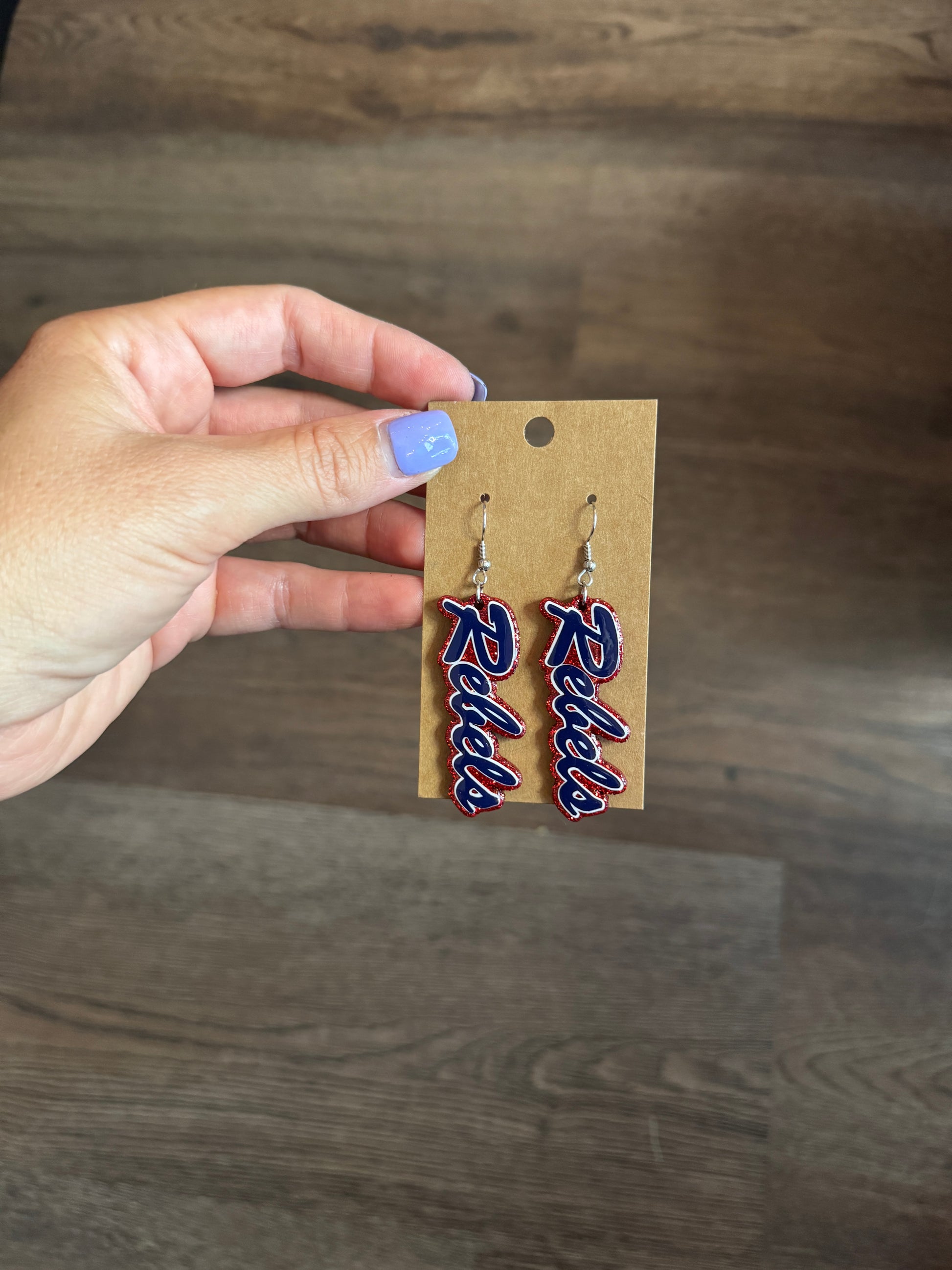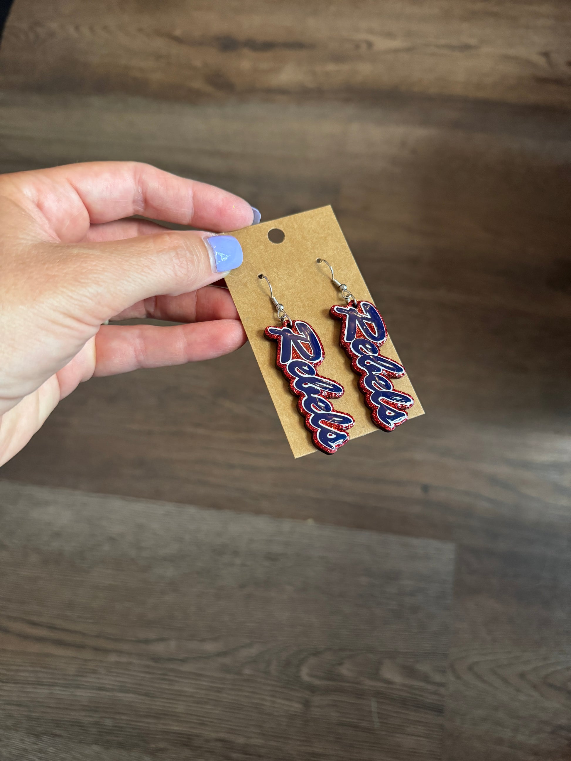 These beautiful, sparkly 2" earrings are the perfect way to show team spirit. They are made of laser cut wood and coated with resin to give it a durable glossy finish. The earring is then hung from stainless steel hypoallergenic hooks.