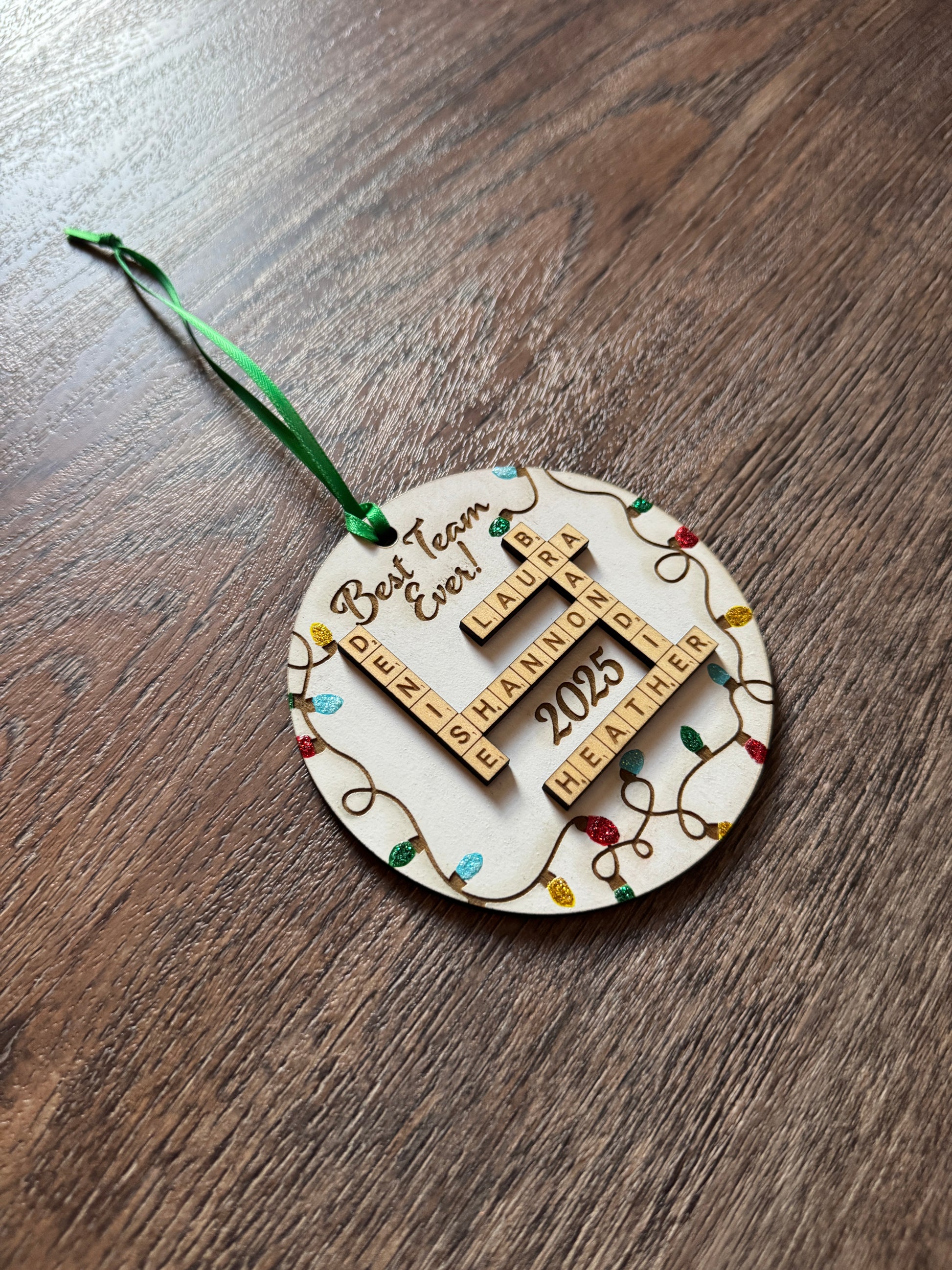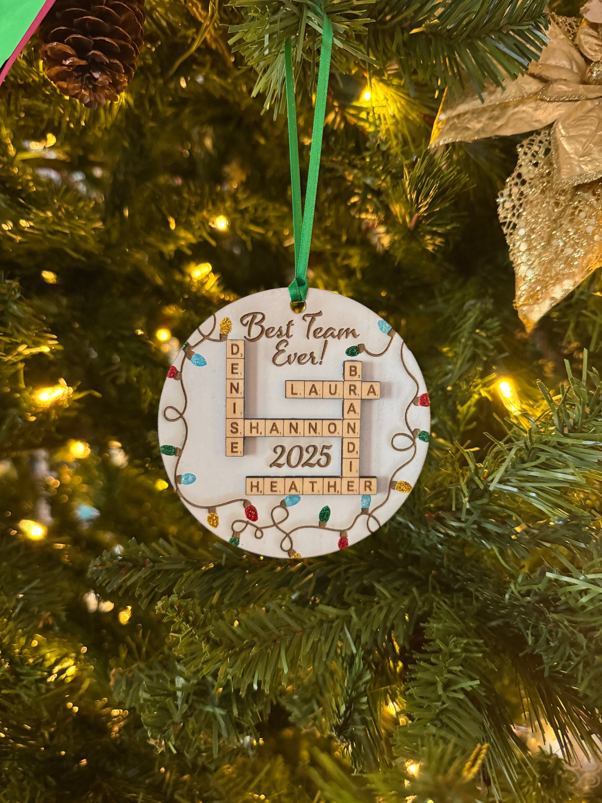 This 2-layered 4" ornament is a great gift or addition to your own tree for Christmas. I can do as many as 6 names and as few as 2. I can also customize what you would like written at the top.